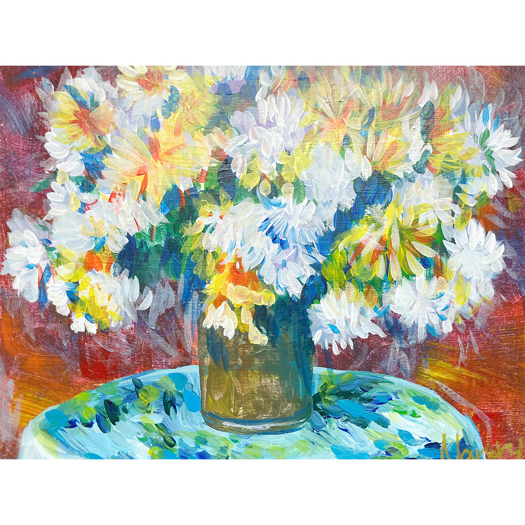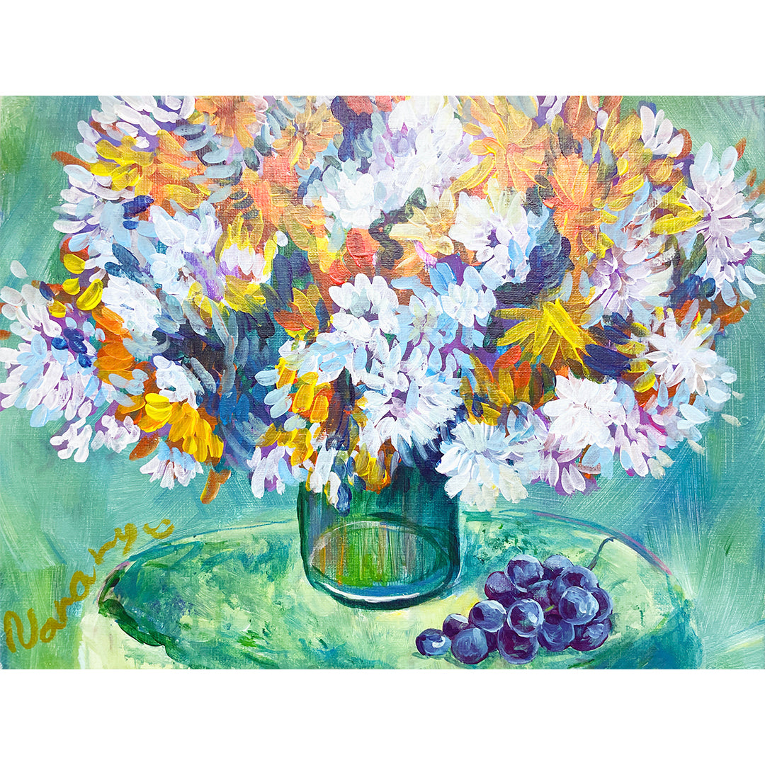 完成した作品には、花の香りまで感じられそうな空気と、心まで華やぐ美を宿します。描く人の感性が反映された、光と色彩の豊かな一枚となるでしょう。
