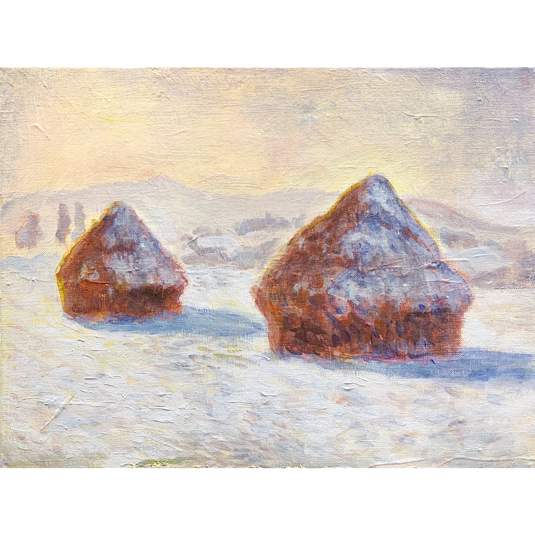 このワークショップでは、モネが生涯をかけて探究した「光と色の変化」を体験します。積み藁という素朴なモチーフを通じて、時間の流れや自然の営みを色彩で表現する方法を学びながら、自分だけの一瞬をキャンバスに残していきます。