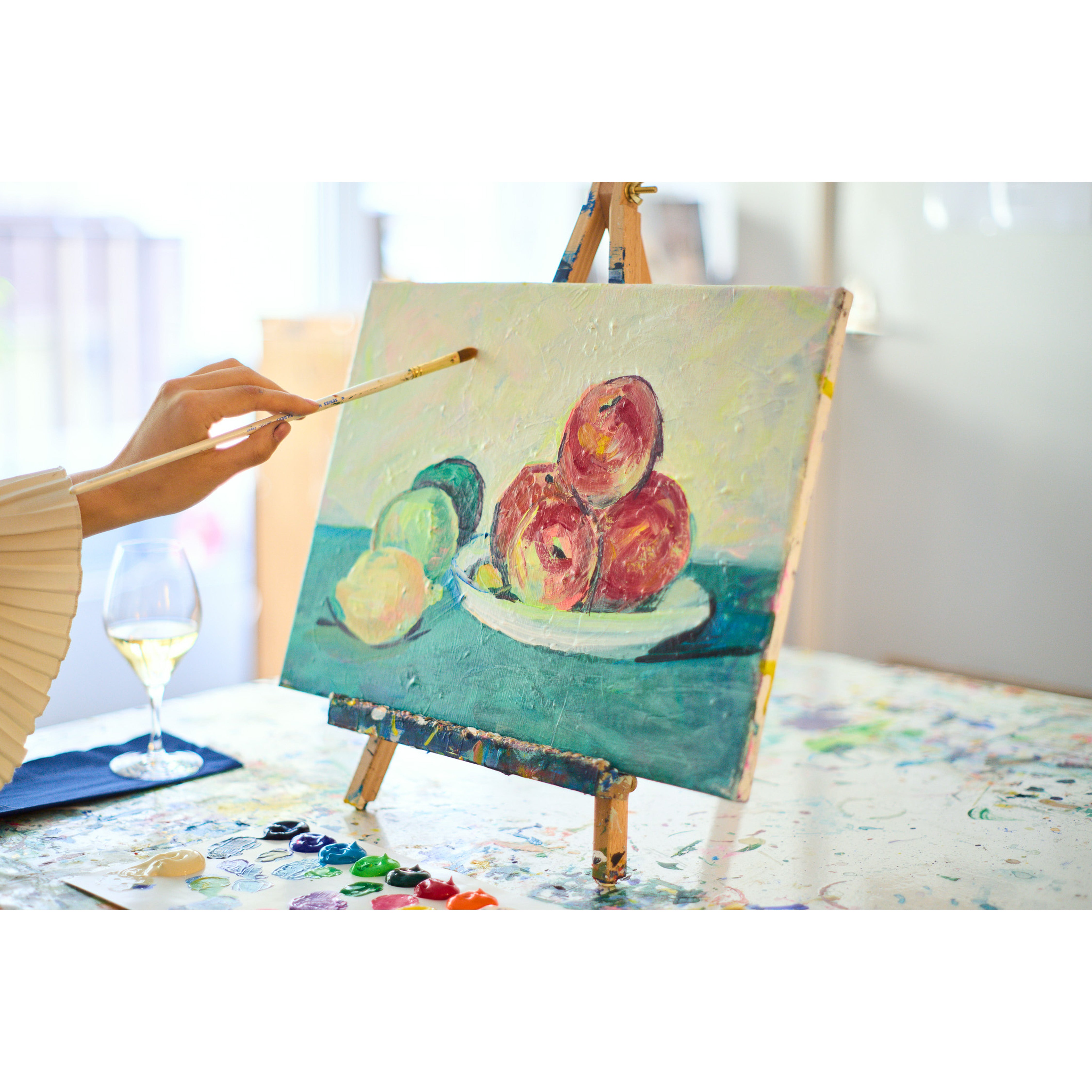 このワークショップでは、身近な果物を題材に、色と形の関係性を探りながら構成の面白さを学びます。筆づかいの重なりで立体感を生み出し、セザンヌのように“見ること”の奥深さを体感してみましょう。