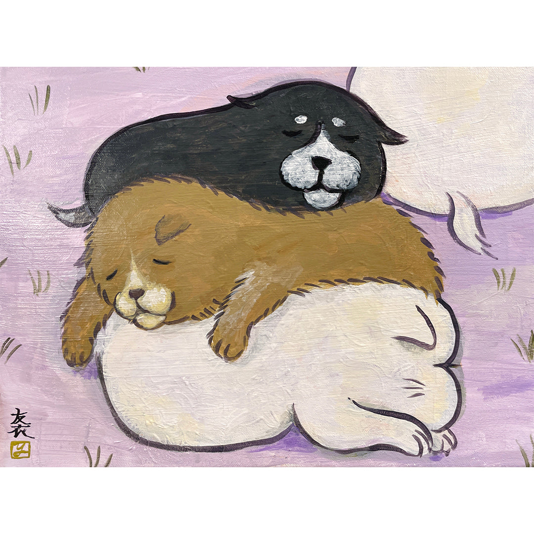 完成した作品には、静かな幸福感とあたたかい命の息づかいが宿ります。柔らかな色合いの中で眠る子犬たちは、見る人の心をやさしく包み込み、日々の忙しさを忘れさせてくれる一作となるでしょう。