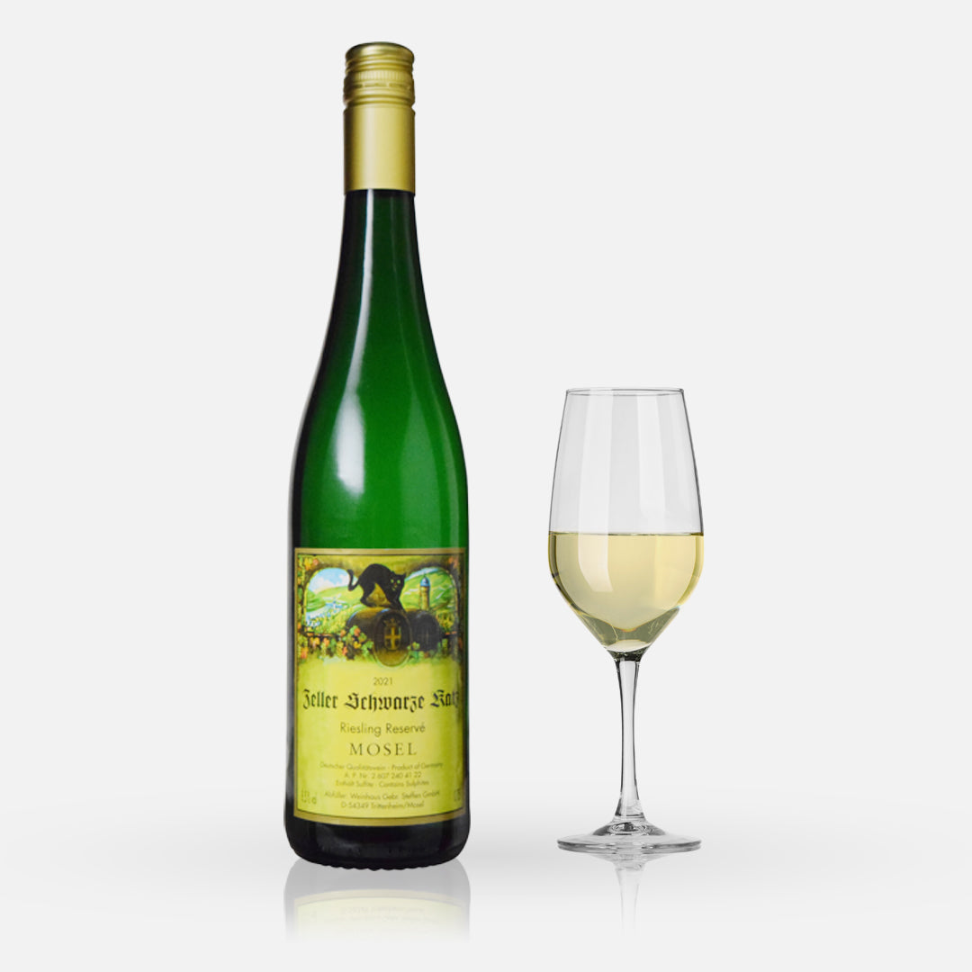 ツェラー・シュヴァルツェ・カッツ・レゼルヴェは、ドイツ・モーゼル地方の名門ワイナリーゲブリューダー・シュテッフェンによって、リースリングというぶどう品種から造られた白ワインです。200年以上の歴史を誇るこの家族経営のワイナリーは、冷涼な気候と急斜面の畑から生まれる、繊細で美しい味わいに定評があります。