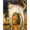 白い猫が背を反らせる一瞬を、やわらかな光と独特の構図で捉えた作品です。