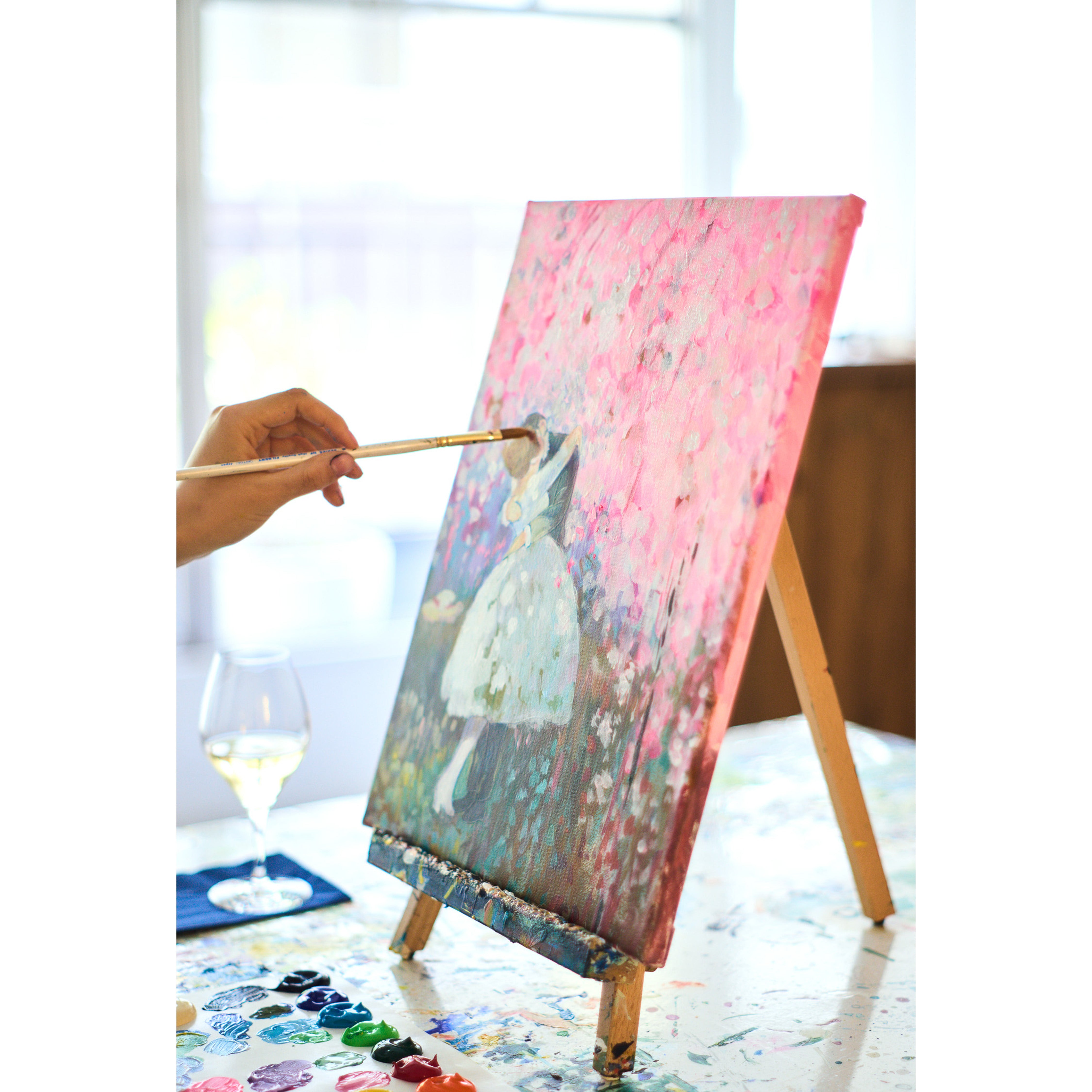 完成した作品には、春の空気のような透明感と温もりが広がります。桜の色が放つやさしさが、見る人の心をふんわりと包み込み、愛や希望の気配を感じる詩的な一枚となるでしょう。
