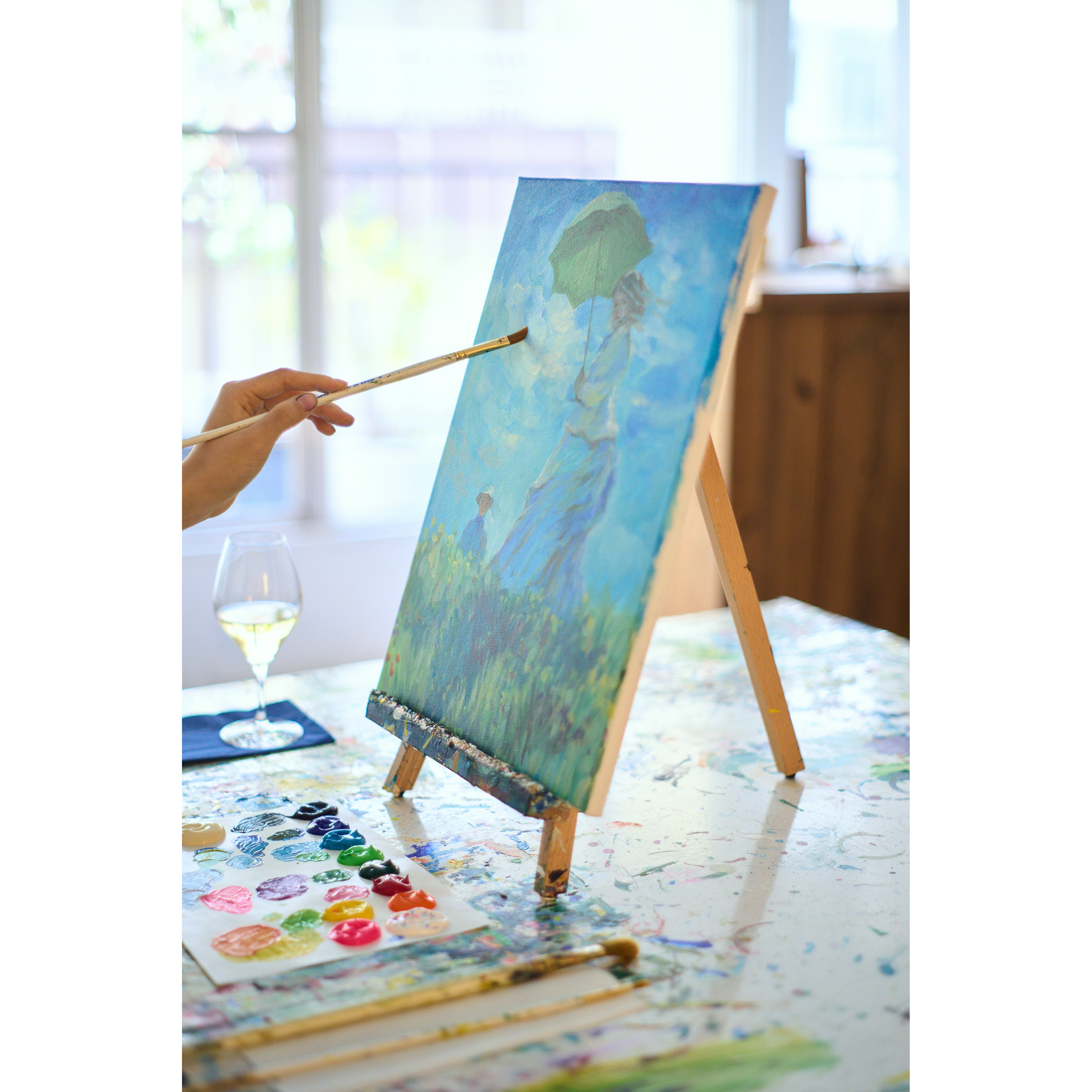 このワークショップでは、モネ特有のリズミカルな筆づかいや、光の柔らかさを表現する方法を体験します。日傘を差す女性の優雅さと、風に揺れる草花の自由な動きを描きながら、自然の中にいるかのような解放感を味わっていただけます。