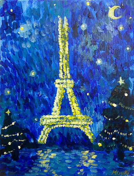 ジョルジュ・スーラの「エッフェル塔」をクリスマスシーズンに合わせたアレンジで描きます。
