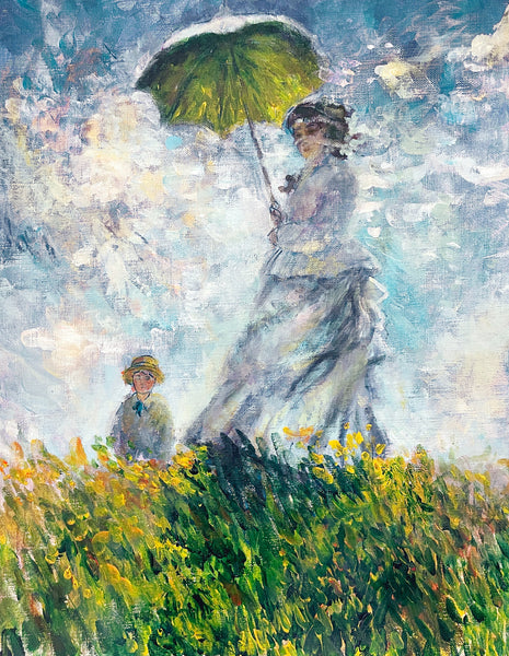 クロード・モネの「散歩、日傘をさす女性」を描きます。