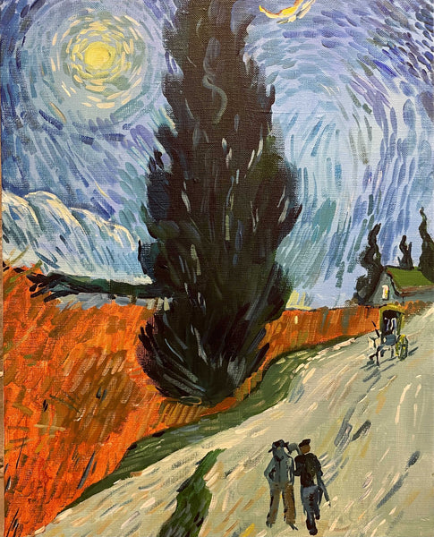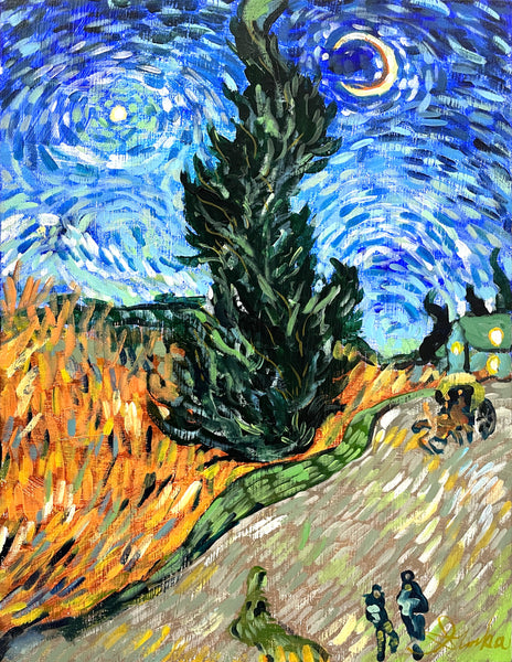 フィンセント・ファン・ゴッホの「糸杉と星の見える道(夜のプロヴァンスの田舎道)」を描きます。