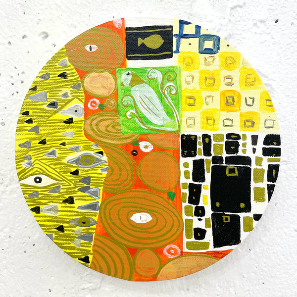 この美しい幾何学模様や金箔を用いて、自分だけのクリムト・モチーフを作り上げましょう。■ 完成作品のサイズ直径200mm(サークルキャンバス)———