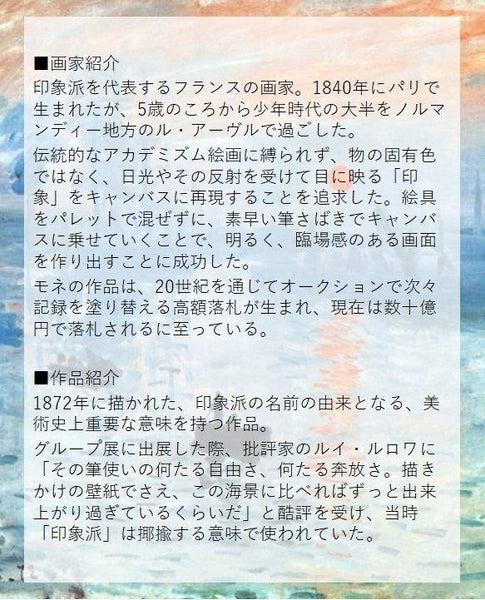 26年01月08日 (木) 19:00-21:00 | 上野・根津 | クロード・モネ | 印象・日の出