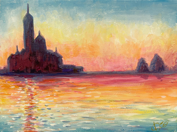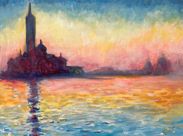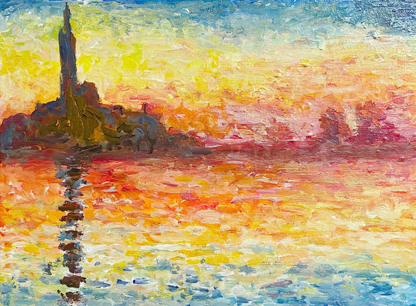 クロード・モネの「黄昏のサン・ジョルジョ・マッジョーレ」を描きます。